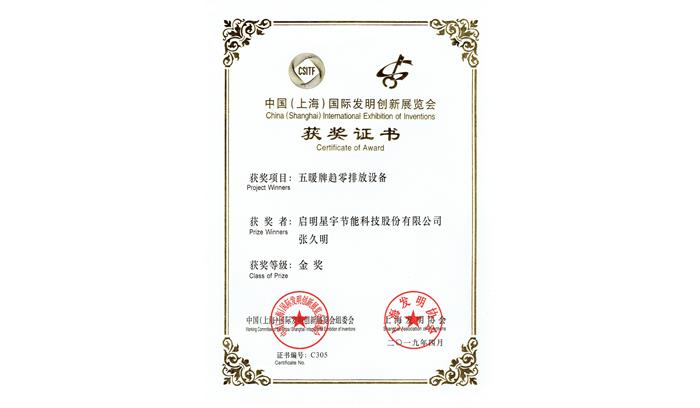 五暖趨零排放設備金獎(上海)